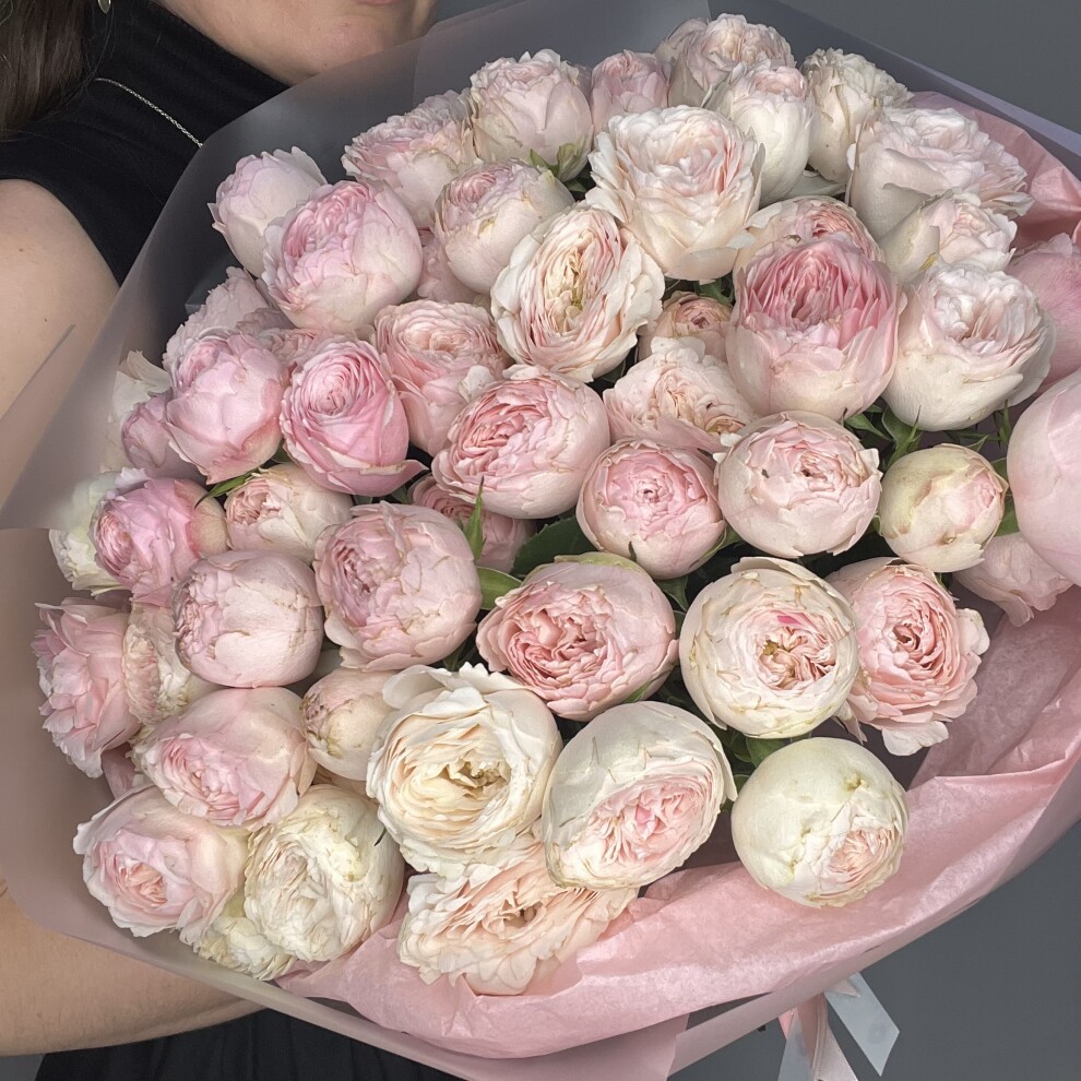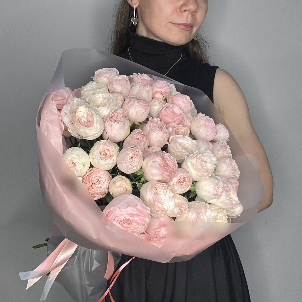 Этот букет — воплощение женственности и аристократической сдержанности . Каждый цветок словно сошёл со страниц классического романа: старинная форма, нежный перламутровый отлив и утончённая двухцветность.